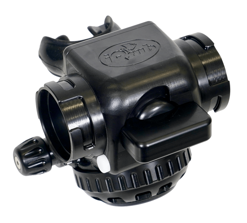 The DSV Shrimp allows to open and close the mouthpiece and breathing loop. It is operated by rotating