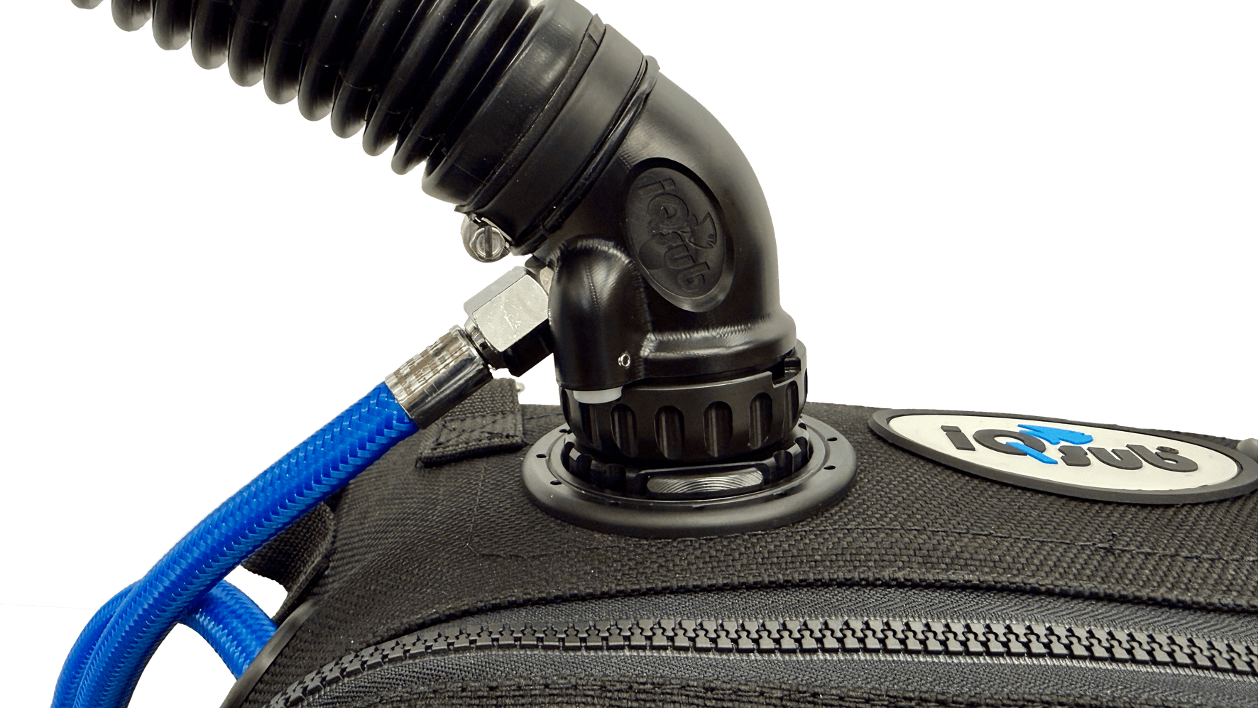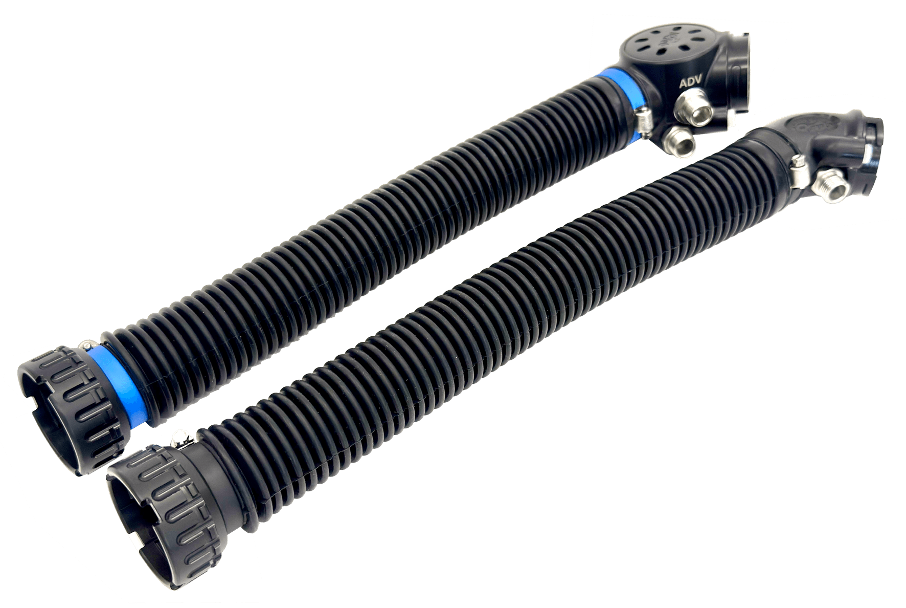 The ADV L-piece is connected to the breathing hose and is attached to the inhale counterlung with Click-