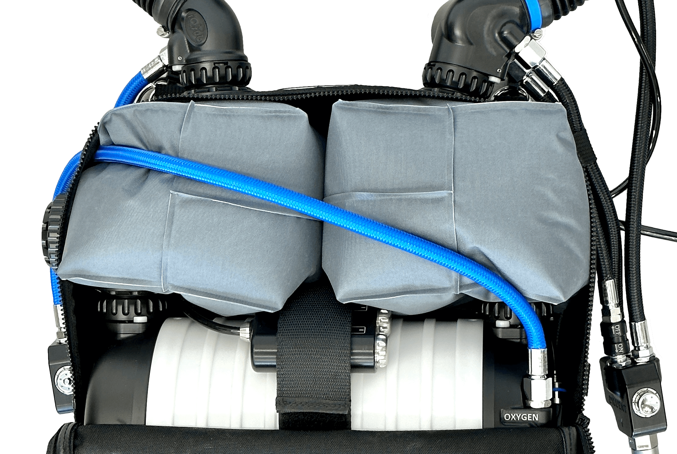 The FX-CCR unit is equipped with 3D shaped Counterlungs designed as gas-tight bags of a cuboid