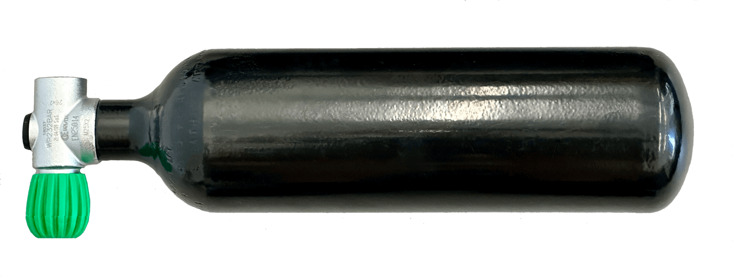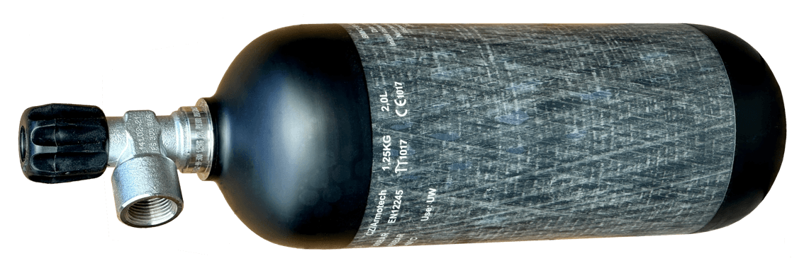 Carbon fiber cylinder 2L/300 bar ∅111mm or steel cylinder 2L/300bar ∅100mm is recommended.