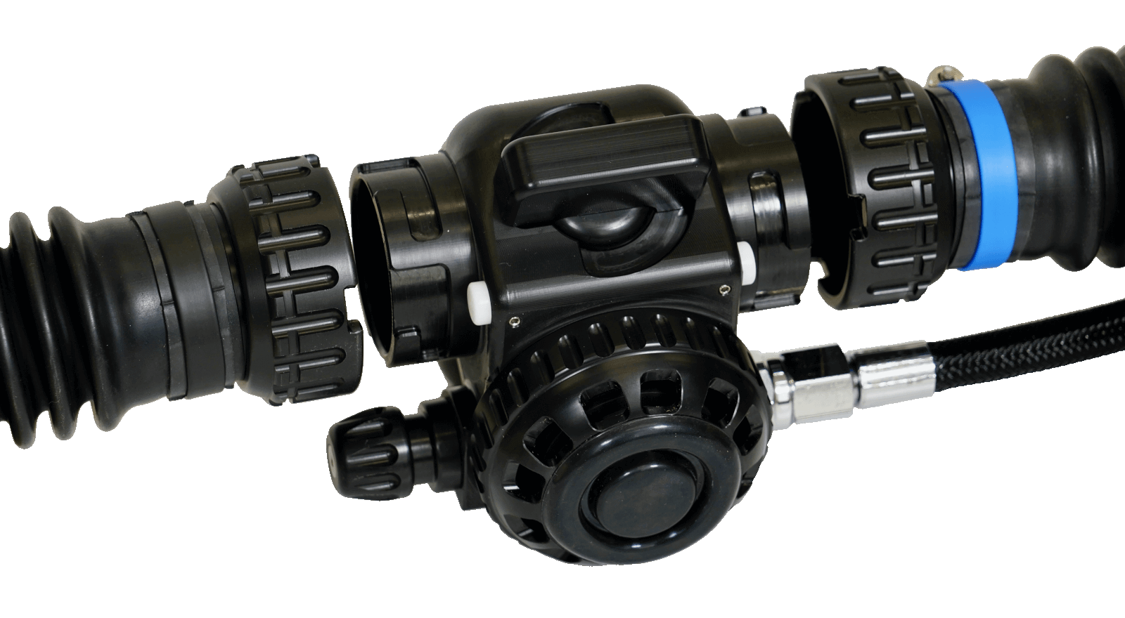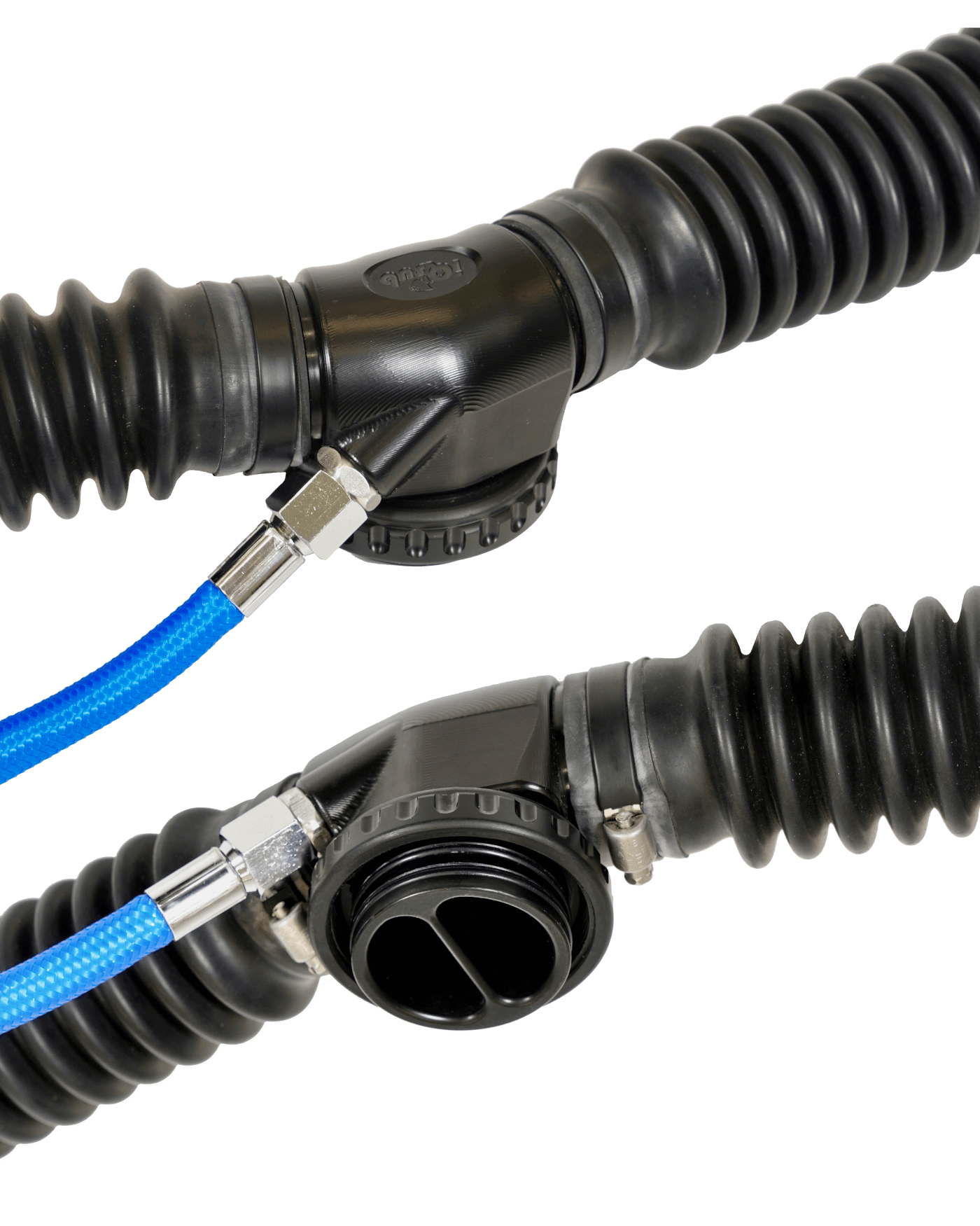 The low-pro f led T-pieces are used to connect the breathing hoses to the Counterlungs.